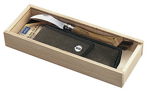 Hurry Up For Discount Opinel 254148 - Coltello per funghi, acciaio inox, legno di quercia, custodia in pelle, scatola in legno