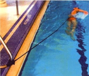 Una cintura alta 5 cm connessa ad un elastico di 1,20 m. Utilizzabile anche in piscine molto corte. Due livelli di resistenza rosso